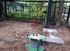 Далее мы приварили к нижней части оградки металлические полосы, которые и послужат бортами для будущего наземного покрытия из гранитной брусчатки.