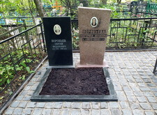Первым делом мы принялись за демонтаж: сняли памятники с основания и поправили постаменты, надёжно укрепив их в земле. Таким образом мы избежали дальнейшего перекоса памятников и поставили оба надгробья на один уровень.