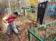 Затем мы аккуратно сняли само надгробье с постамента, после чего смогли свободно работать на участке.