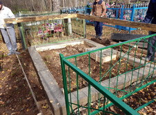 Первым делом мы замерили круглые портреты покойных на керамике. Старые пора было заменить, а новые предполагалось установить на то же самое надгробье, поэтому овалы должны быть идентичны предыдущим.
