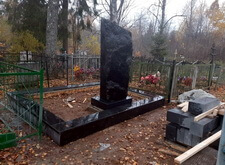 Сразу же после установки надгробья мы приступаем а облицовке бетонного периметра плитами из полированного гранита.