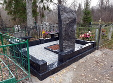 Как видно из названия проекта, в данном заказе нам необходимо было изготовить мемориальный комплекс на основе уже существующего памятника. Приехав на место захоронения мы обнаружили довольно-таки простой участок с массивным надгробьем, которое несколько обветшало от времени.