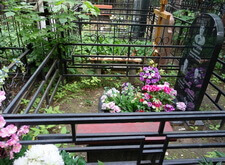 Последовательность работы стандартная. Во-первых, сжечь старую краску, во-вторых, зачистить ограду до металла, после покрыть грунтом чистый металл и покрасить черной краской. После покраски убраться на могиле. Далее на фото обожженная краска на ограде.