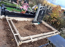 Первым делом мы вынесли с территории участка всё лишнее, а также прополи землю на могиле, одновременно с этим возводя дощатый периметр – одну из сторон будущей опалубки.
