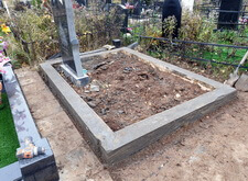 В данном заказе нам предстояло провести полный комплекс работ по благоустройству места захоронения. В момент нашего приезда на участок на могиле находился лишь широкий памятник и разобранная ограда, которую нам и предстояло разместить по периметру могилы.