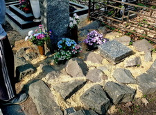 В ходе работ мы очистили территорию места захоронения от мусора и листвы, протёрли бюст покойного, саму стелу, а также обновили надпись на памятнике.