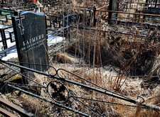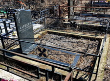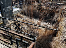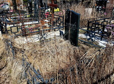 На территории места захоронения предстояло провести обычную уборку после зимы. На могиле видна сорная трава, ограда и памятник покрылись пылью.